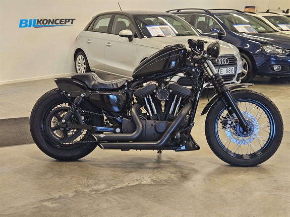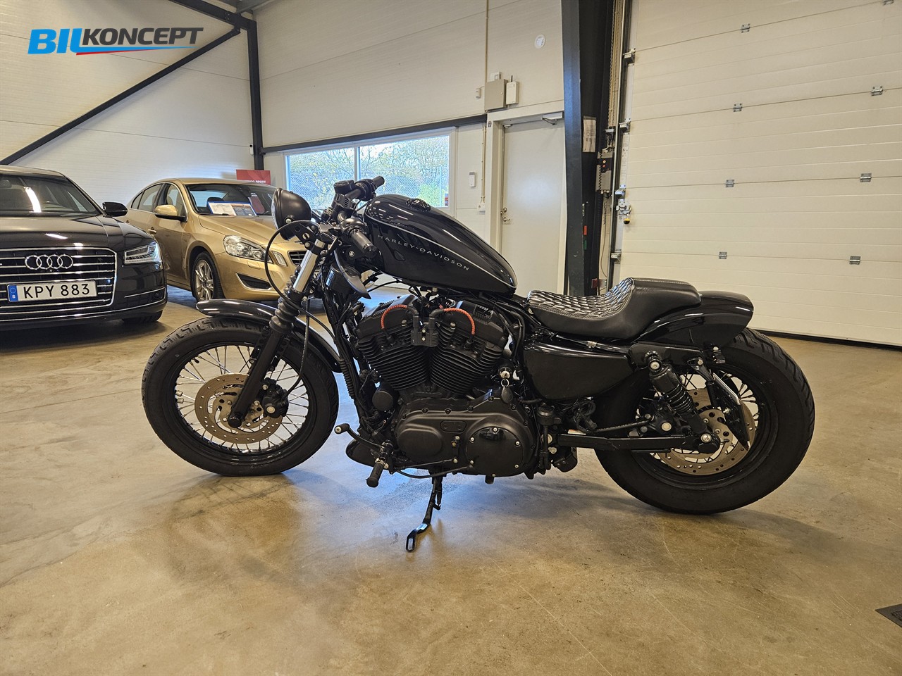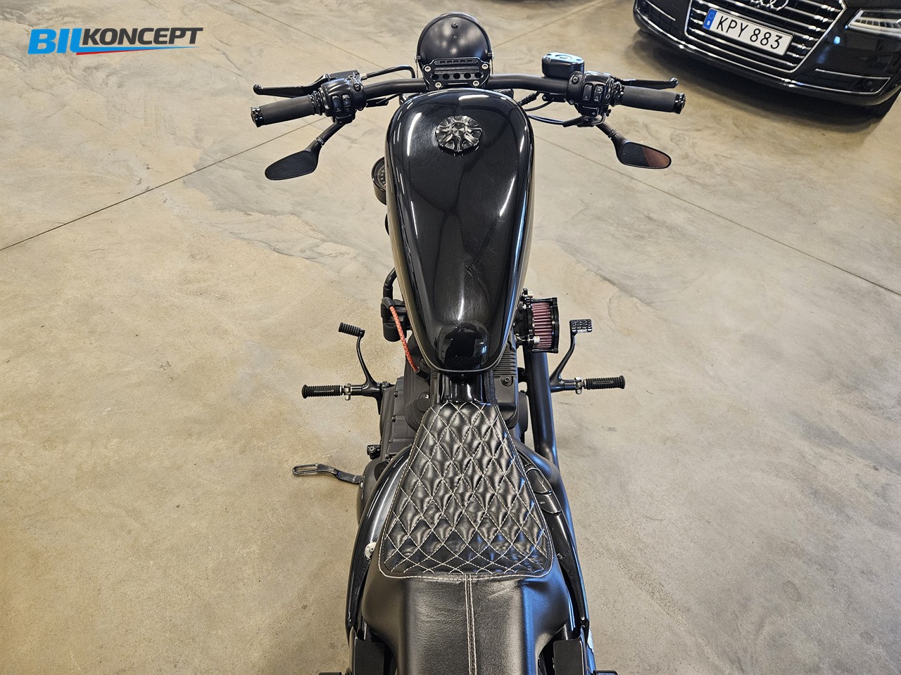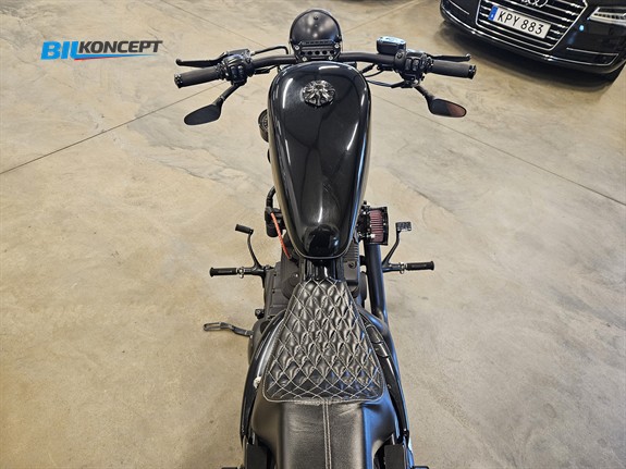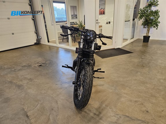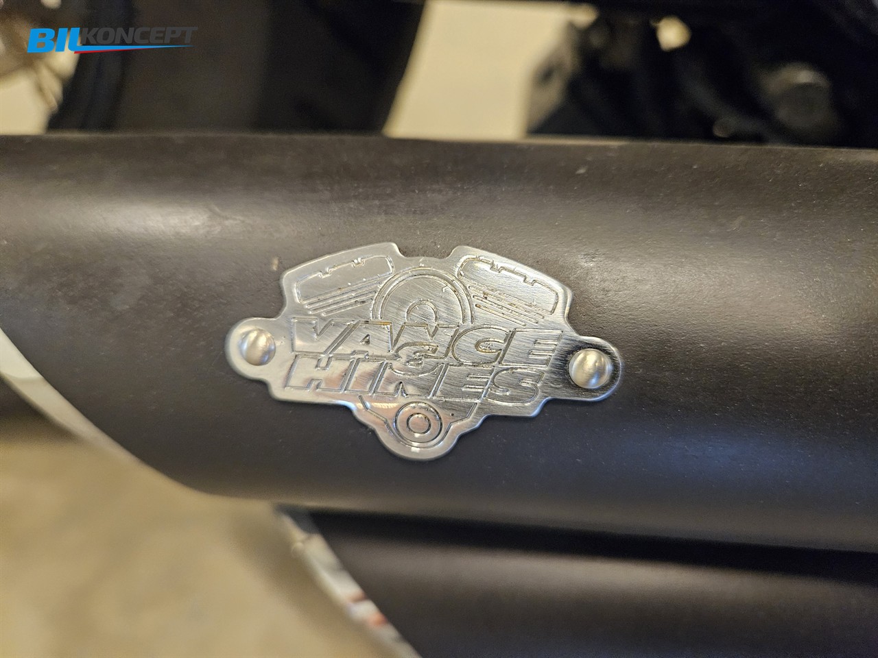 Vance och hines avgassystem. Mini blinkers fram och bak. Diskreta speglar. Tank-lift. Öppet luftfilter. Sidmonterad regskylt med belysning. Sidmonterad hastighetsmätare. Flyttad låskolv och tändning. Bally pan. Flyttad instrumentbelysning. Orginaldelar medföljer., En månad gratis helförsäkring ingår vid leverans. Registreringsavgift på 600kr tillkommer på alla köp.